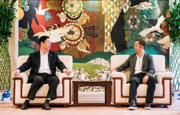 △中国中车集团公司党委书记、董事长刘化龙(左)与《大国品牌》出品人吴纲(右)