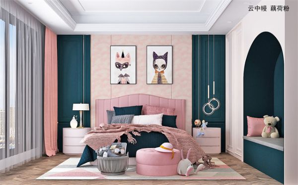 因此住在粉色装饰的房间中