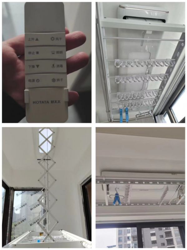 智能晾衣机也是之前去朋友家体验过,立马种草了。同样都是好太太的牌子,功能差不多,她买的时候促销价一千五左右,所以看到1099的价格也是果断出手了。店家还提供免费赠送拆旧服务,我家不用拆旧,跳过这个流程直接安装。现在晾衣服超级方便,按一下遥控器就能自动升降,5岁的儿子都抢着干这活儿,觉得很有趣。另外这款晾衣架还配备了语音、照明、杀菌功能,完全能满足一家人需求。