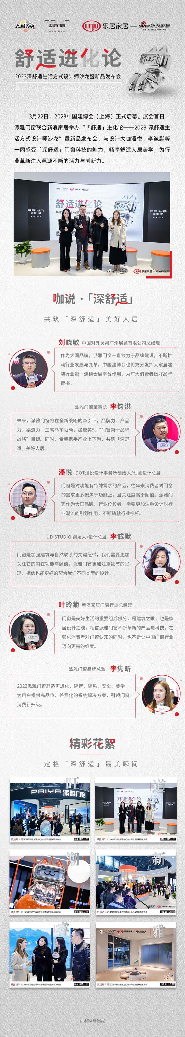 新浪门窗频道讯 3月22日,2023中国建博会(上海)正式启幕。展会首日,派雅门窗联合新浪家居举办“「舒适」进化论——2023 深舒适生活方式设计师沙龙暨新品发布会”,与设计大咖潘悦、李诚默等一同感受「深舒适」门窗科技魅力,畅享舒适人居美学,为行业革新注入创新力。