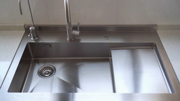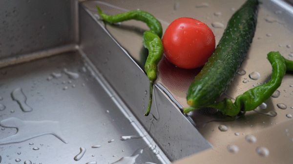 水槽左侧可进行瓜果蔬菜、海鲜食材的清洗,量多也不拥挤;右侧阶梯式台面结构,可进行沥水、置物,甚至解冻、接水等功能,增加空间的利用率,置式一体化集成水路,接口少,给台下更大的储存空间;配合360°万向水龙头,冲刷污渍无死角。