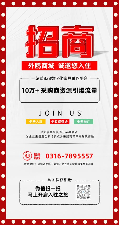 目前,外鸥商城已入驻1000+店铺,在售商品3000余件,20余万精准客源在线采购。现面对全国广大家具企业发出免费入驻邀请,一份入驻流程为您提供详细参考。