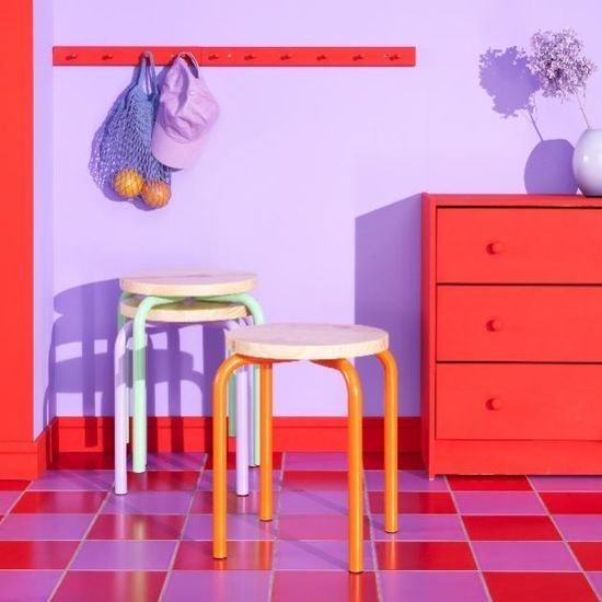 除此之外,Nytillverkad 霓特浮德 系列还包括DOMSTEN 多姆斯坦 凳子,这张凳子拥有光滑的松木凳面与现代时尚的彩色金属支腿,其原型是由Karin Mobring设计的JERRY 凳子;此外,还有一款BONDSKÄRET 邦克拉特 衣帽架,其原型是由设计师Rutger Andersson打造的SMED 衣帽架,现以醒目大胆的风格焕新演绎。