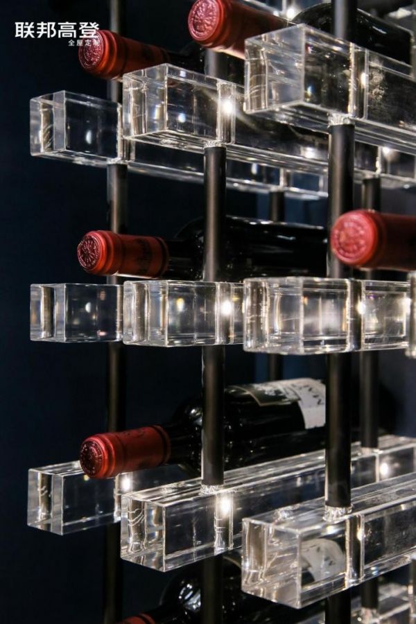 美酒瓶樽排列齐整,在灯光的映射下交相辉映,如同漫天星光,夺人眼球,丰富着空间的质感与格调。