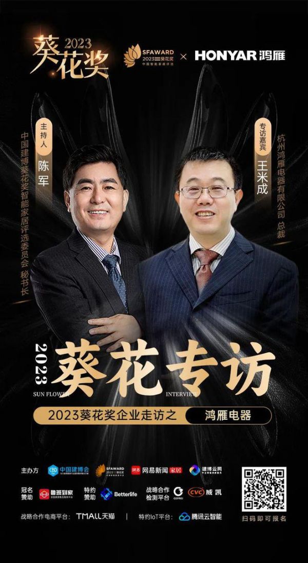 2023第七届“葵花奖”正式启动,本届葵花奖由鲁班到家独家冠名、贝特莱特约赞助,中国建博会、中国建博葵花奖评选委员会、网易家居、建博云网联合主办,中国消费品质量安全促进会消费类电器产品工作委员会、中国消费品质量安全促进会智能网联产品创新联合体协办,工信部电子第五研究所、CVC威凯作为战略合作检测平台,天猫作为战略合作电商平台、腾讯云作为特约IoT合作平台,华艺广场作为战略合作展贸平台,为2023第七届葵花奖加持。中国建博葵花奖被誉为智能家居行业“含金量最高的奖项”,凝聚专业权威力量,打造智能行业最高评选标准,推动智能家居行业高质量发展。