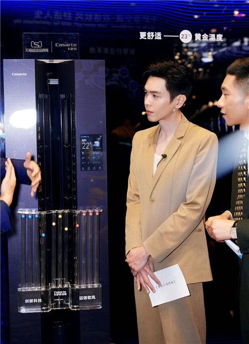 体验完了光年套系,张若昀一行又来到星空概念套系展区。他平时就对智慧家居很感兴趣,而星空概念套系首次采用了智能光纤皮肤,实现了光纤交互、人机共情,首先映入眼帘的是星空般绚烂的质感。当站在空调前调节冷暖与风量时,光纤呈现出了如影随形的明暗冷暖变化,感觉像是穿越到科幻电影里的未来世界。让他觉得很有意思的是,冰箱与橱柜的部分储藏与展示功能结合,边柜可以收纳常温的食材、饮料等,不但让冰箱橱柜之间不显得那么呆板,整个厨房也更生动了。