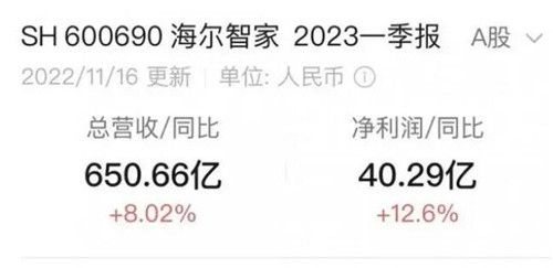 一季报数据显示,海尔智家Q1实现营业收入650.66亿元,同比增长8%;归母净利润39.71亿元,同比增长12.6%;利润增速持续超营收增速,继续实现全球逆增、全球领跑。