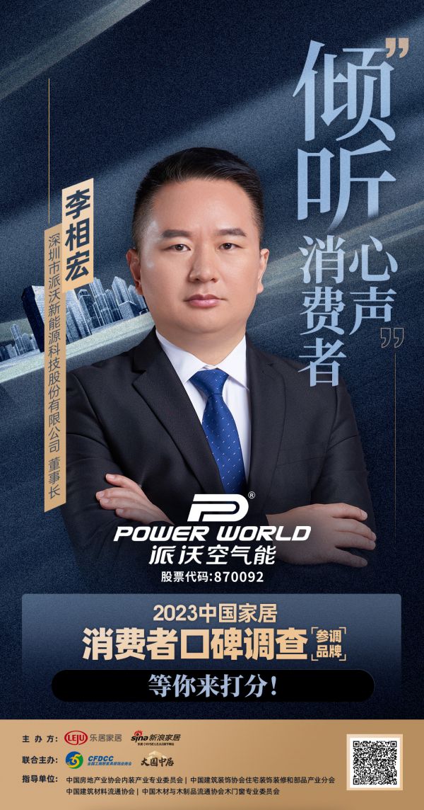 “聆听消费者声音,维护消费者权益”,经过主办方资格审查后, “派沃空气能” 作为《2023中国家居消费者口碑调查》参调品牌,诚邀您前来打分!