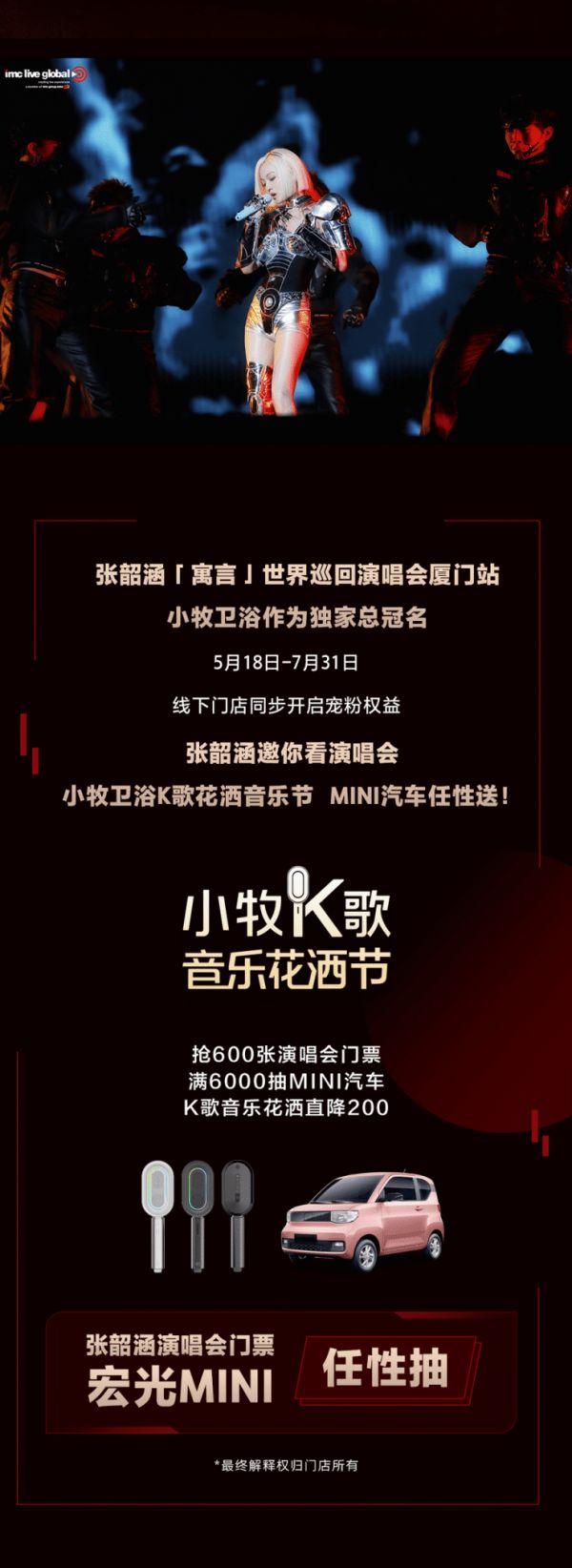 小牧独家冠名张韶涵演唱会共启K歌音乐花洒节!附600张票免费抢终极攻略