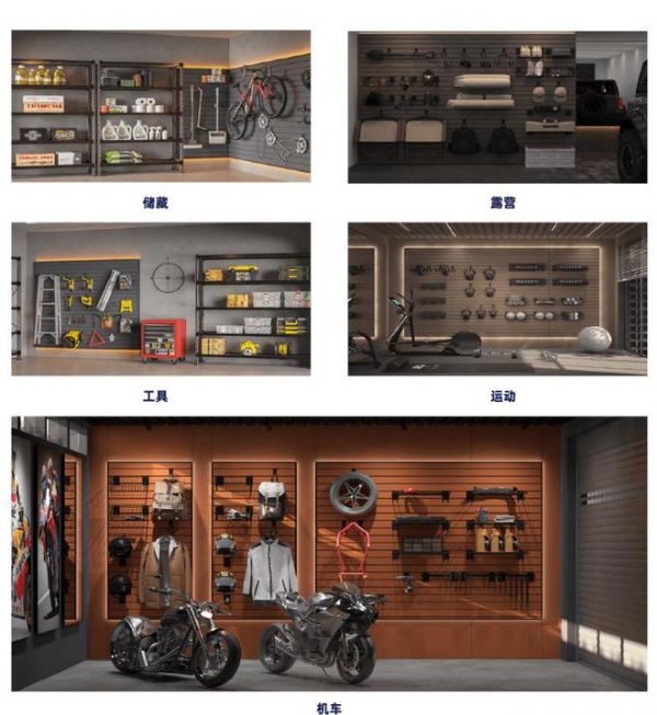 在集成车库展区,现场重点展示了涵盖储藏室、运动、机车、露营、工具房五大场景的集成车库,满足多重收纳的储藏室、灵活打造运动、机车等自由场景,重构多元个性的欢乐空间。