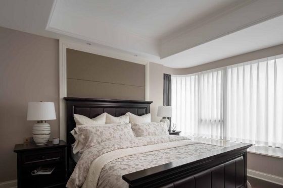 采光资源是本案最大的地理特征,主卧也依然利用大面积窗面,弧形飘窗让主卧实现最大程度的采光,也让屋内的细节在岁月静好中散发恰到好处的亮度。