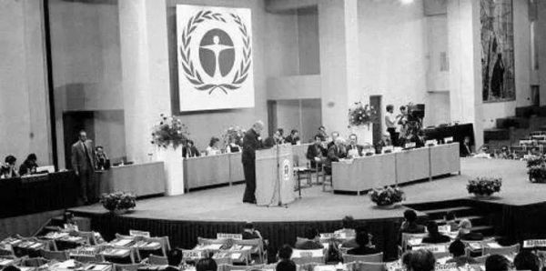 1972年6月5日在联合国第一次人类环境会议上,中国代表团与113个国家和地区代表共同起草并通过了著名的《人类环境宣言》及保护全球环境的“行动计划”,提出“为了这一代和将来世世代代保护和改善环境”的口号。