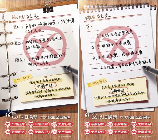 僵局在装修进行到购买家电家居产品时被打破,母女俩奇妙的达成了一致。她们不约而同的向对方分享了自己的“秘籍”——以旧换新。
