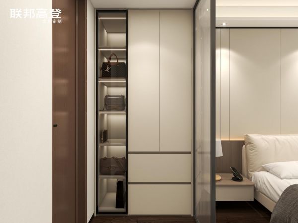 个性定制的装饰柜,融入铝框玻璃时尚点缀,贴心照料精致包包;同时多隔层的设计让收纳体系更为细致。