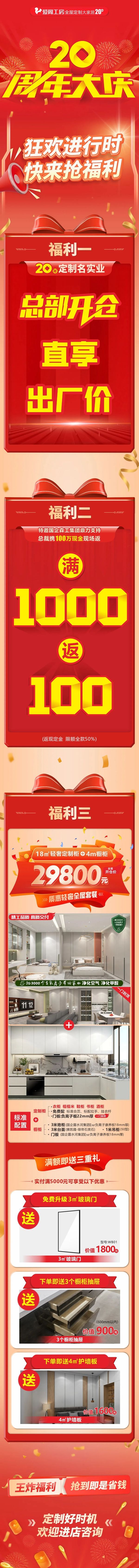 值此20岁生日之际,盛大启动20周年大庆,与邻居们共狂欢,享定制盛宴,活动现场人气爆棚,盛况空前。为什么人气如此高涨?此次爱阁工房20周年大庆,为感谢邻居们对爱阁工房一直以来的支持和信赖,特邀国企露水河集团鼎力支持,总裁携100万现金现场返,满1000返100,返完即止。除此之外,还为邻居们准备了多重定制福利,总部开仓 直享工厂出仓价,质惠轻奢全屋套餐18m²轻奢定制柜+4m橱柜只要29800元,满额即送,免费升级玻璃门,下单即送橱柜抽屉和护墙板,机会不容错过,错过再等一年!