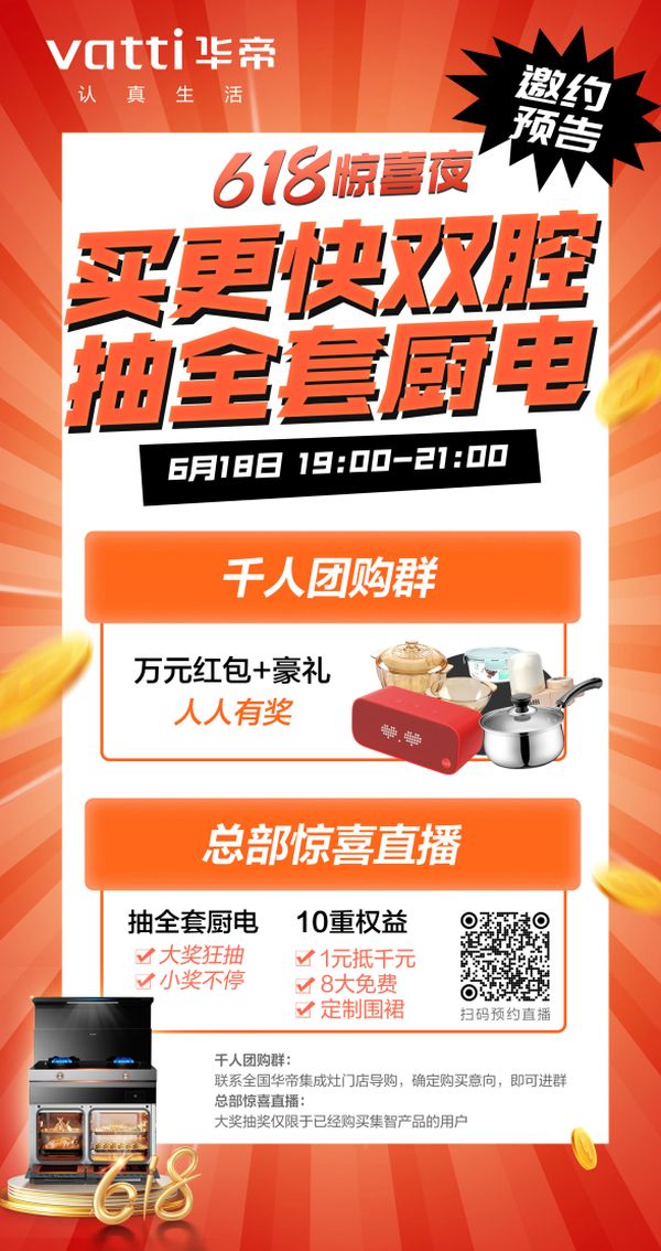 618狂欢季×华帝集成灶“更快双腔”大碰撞:直播间好礼送不停!