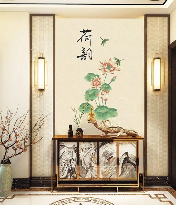 人类与生俱来就有追求吉祥,向往幸福的心态。在客厅选择一幅寓意美好的刺绣墙布不仅能用来讨个【好彩头】,还能够很好得装饰客厅,在风水上还能旺运聚财,寓意和平富贵。