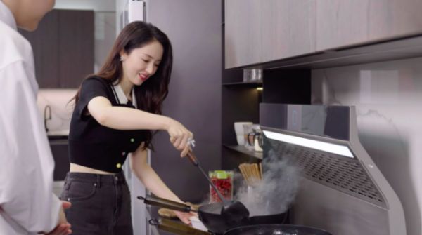 X8智能集成灶通过单向直排风道的设置,以及25m³/min的大吸力、1200pa的超大静压,让油烟无处可遁,还给烹饪一个明亮干净的新空间。董璇也直接在“吸力大小、吸烟速度、吸烟范围”三个打分项上,统统给予五颗星好评!
