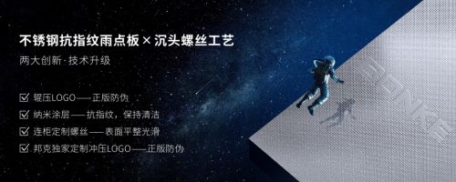 除了基础功能之外,邦克也一直不断地提高产品的美学附加值。新升级的沉头螺丝工艺,使螺丝头部与表面齐平,光滑平整、美观,更有质感。在细节设计上更体现人性化,满足消费者对美的极致追求。