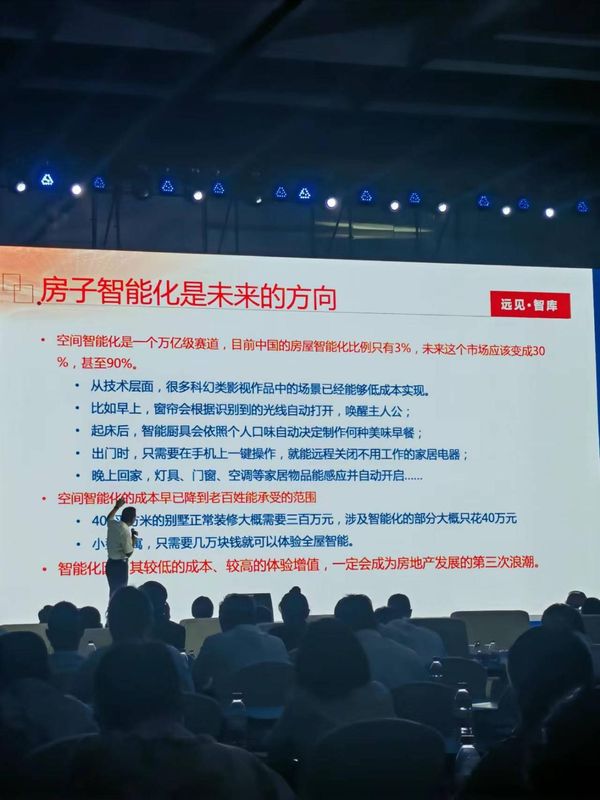 “房子智能化是未来趋势,”马光远开宗明义,直言空间智能化是一个万亿级赛道,目前中国的房屋智能化比例只有3%,未来这个市场应该变成30%,甚至90%。从技术层面,很多科幻的影视作品中的场景已经能够低成本实现。