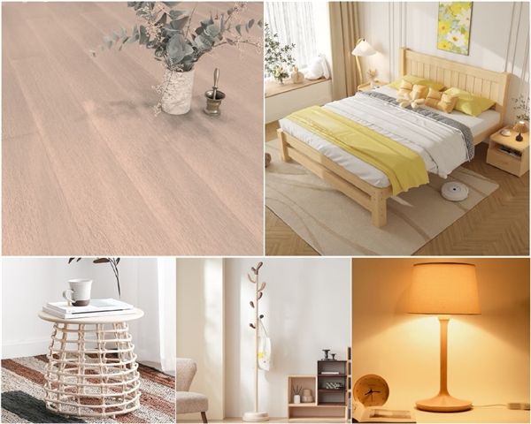 如果热爱质朴的日系风,更换实木地板、茶几等家居家装大件可以立竿见影地营造出氛围感。客厅中铺设大自然番龙眼野生原木地板凸显质感,环保的曼好家编藤茶几与原木色地板搭配相得益彰。卧室软装方面,甄选进口实木的意米之恋实木床、无意树形创意衣架,两者组合更显生活温馨感;灯光方面选择光线柔和的本来设计榉木调光工字形台灯,更使得整个房间氛围大方宁静。