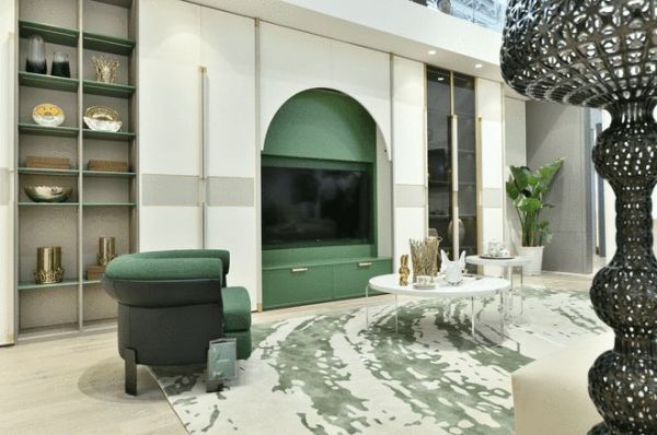 展馆内部魅影、梵尔、境雅三大全屋定制空间一一陈列,优雅简致的风格让高端品质从细节处低调流露,灵动的灯光巧妙地融入其中,展现出轻盈与活力,将品牌理念“润物细无声”地传达到消费者心中。打造出舒适、温暖的整体基调,演绎出兔宝宝全屋定制高端系列的魅力。