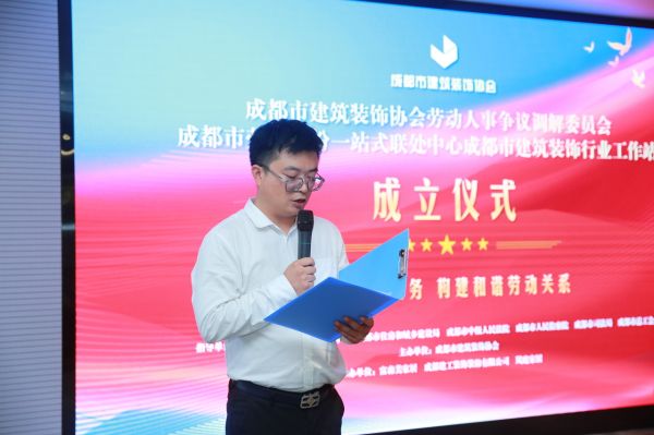 7月14日,为深化行业服务,构建和谐劳动关系,在成都市中级人民法院、成都市人民检察院、成都市人力资源和社会保障局、成都市住房和城乡建设局、成都市司法局、成都市总工会等单位的指导下,成都市建筑装饰协会劳动人事争议调解委员会(简称“调委会”)、成都市劳动纠纷一站式联处中心成都市建筑装饰行业工作站(简称“联处中心装饰行业工作站”)成立仪式在蓉举行。其中,联处中心建筑装饰行业工作站为成都市内首个,将为后续站点的设立提供样板。