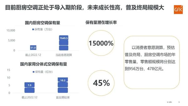在此背景下,能够改善生活质量的品质型和享受型家电产品进入上行通道,新家电不断涌现,消费升级下,据GfK依据当前消费者意愿测算,未来厨房空调的保有量有望达到7649.5万台左右,保有量的潜在增长率为15000%,厨房空调有望成为下一个现象级产品,这也将为联小邦继续走“可持续发展道路”提供有力的支撑条件。