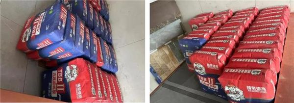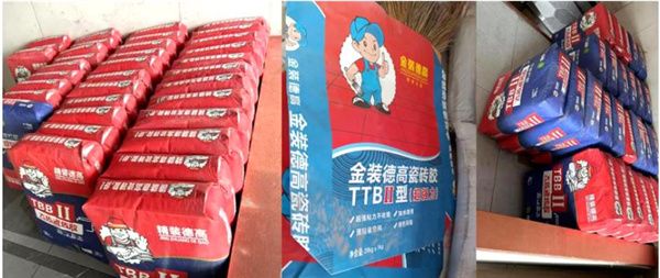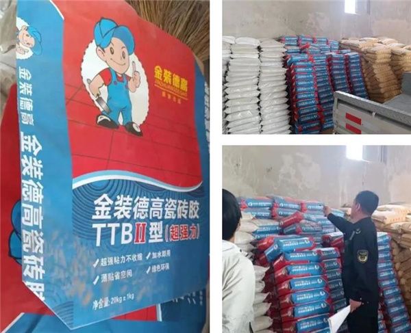 扬州市监查处1家销售精装德高门店查扣精装德高瓷砖胶61包。