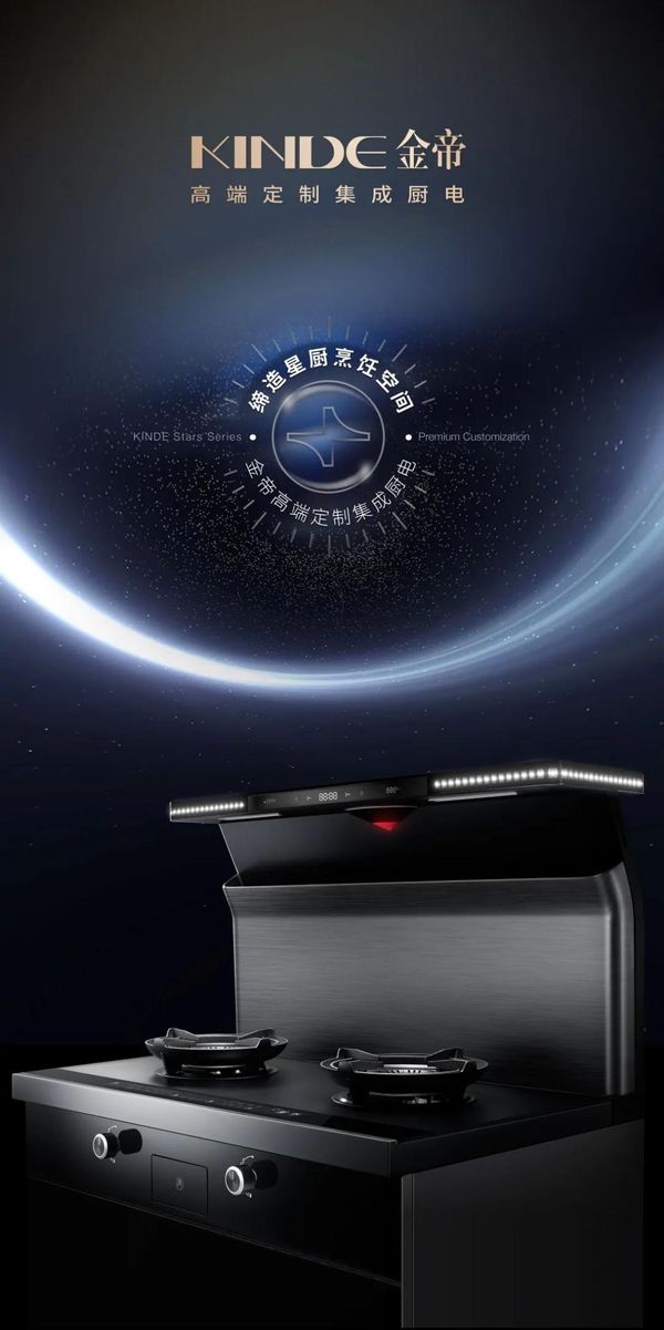 金帝智能厨电作为业内首家与中国航天事业达成合作的品牌,先后推出以月兔二号为代表的航天科技产品群和行业首创高端定制产品辰星系列。