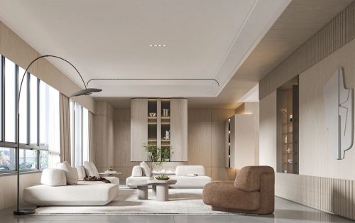 淡化的色彩构建了沉静内敛的空间。在客厅采用减法设计,简单而不乏味的陈设和装潢,赋予空间更多的想象。将纯粹开放的属性融入到家居空间的形态当中,浅尝辄止的分寸毫厘,让居中在其中的人感受游刃有余的生活乐趣。