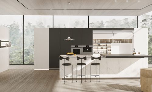 这款来自引意的TOUCHING系列橱柜,采用简约克制的设计手法,创造高度有序的产品空间,极简的外观、开放式布局,营造明朗开阔的空间环境。近乎裸色的搭配,予人严谨且宜居的都市感。