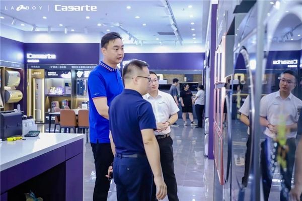 签约仪式结束后,双方领导、产品经理互相参观门店,对于品牌营销战略合作做进一步的探讨。为了向消费者更加直观展示双方的精致舒适理念,双方领导、产品经理联合主持人及舒适生活体验官进行了联动直播。在LAZBOY和卡萨帝双方硬核产品的加持下,大家畅谈对于精智舒适生活的想象,并在客厅、餐厅、生活区等场景亲身体验产品,将双方品牌价值深度融合,吸引众多观看,引爆线上热度。