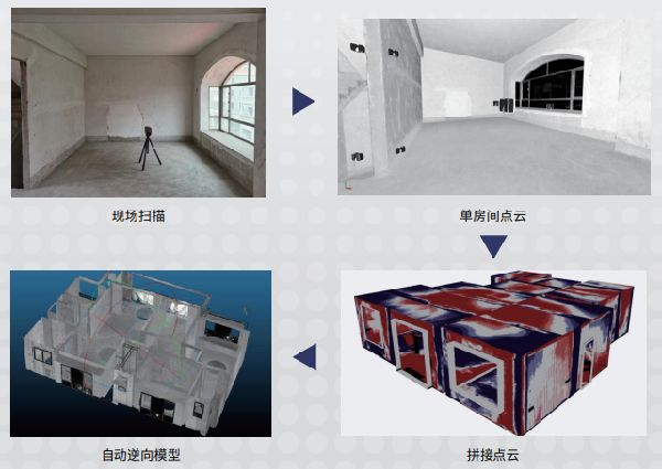 同时领慧智能量房在家装定制、装配式装修、旧房改造等方面也有不俗表现,通过对空间尺寸数据的精准把控(误差1mm级)和统筹分析,建筑预装配的部品部件可以实现大批量生产,降低生产成本,增加现场施工的通用性。且在慧云平台呈现的数据也可以在设计、生产及施工单位各端口之间实现信息实时共享,帮助各单位提升管理效率。