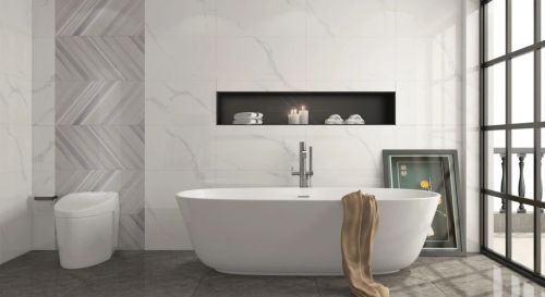 惠万家瓷砖采用现代智能化砖坯生产技术,产品吸水率低至0.05%,在卫生间等防潮要求高的私域空间具有出色的应用效果。