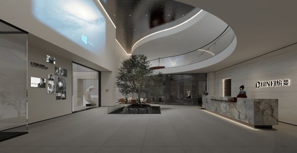 展厅的接待、文化展示、洽谈空间的设计以简洁的几何直线和精炼的弧线作为空间的主导原素,将极简主义中"简”之美表达得淋漓尽致又恰如其分。没有杂乱非结构性装饰,没有无中生有的变化,有的只是轻盈通透、光影徜徉。