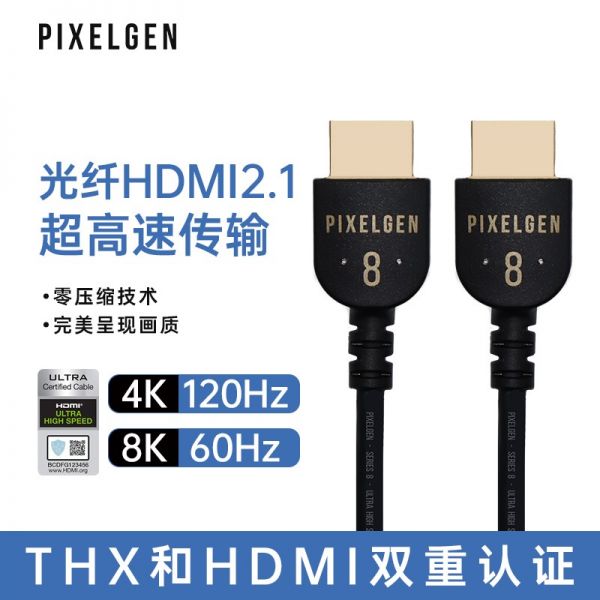 Pixelgen Design Inc.推出两款首批通过THX认证的8K HDMI线缆,分别以长距离和短距离传输为方向提供版本。其中,PXLGLASS 8混合光纤/铜芯HDMI线为长达50英尺(15.24米)长距离传输设计;8系列超高速HDMI线,可传输6.6英尺(约2米)。