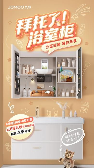 九牧作为国内卫浴行业的领头羊,创造性的将分区收纳引入浴室柜设计之中。在今年天猫88会员日活动中,九牧推出了一系列主打“分区收纳”的美妆浴室柜,高颜值外表和收纳功能让人眼前一亮。