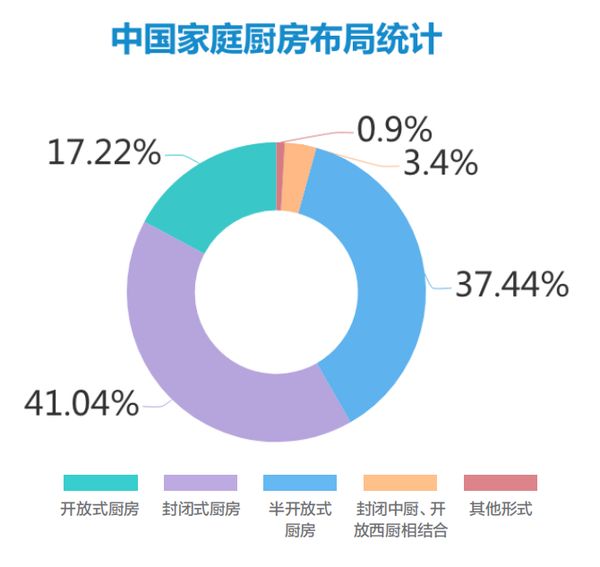 从调研数据看到,半开放式厨房和开放式厨房分别位列第二、第三,这代表着中国厨房正在摆脱固有的装修模式,从全封闭走向半开放甚至全开放。