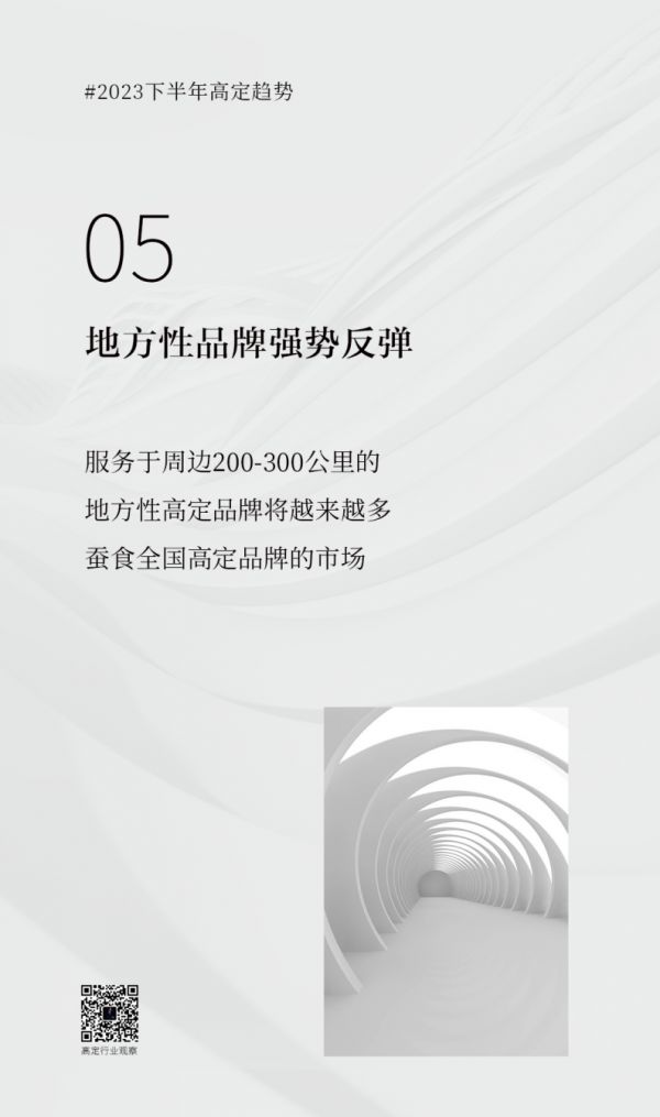 依托于本地的新媒体和他们对于本地人情世故的把控,以及优质的深度服务,大量地方性的高定品牌将强势反弹,未来服务于周边200-300公里的地方性品牌会越来越多。