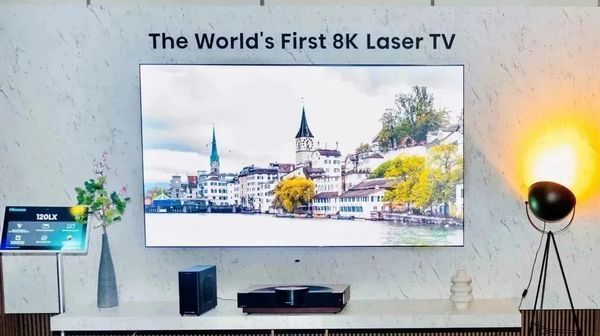 在主题演讲中,于芝涛还重点介绍了海信最新推出的折叠屏激光电视产品。这款激光电视屏幕框架可折叠,屏幕膜片柔性可卷曲,实现了分体入户,即使是屏幕大到 120 英寸,也可以轻松进入特别狭窄的空间,无需拆除门窗或使用任何重型设备,解决了消费者购买超大尺寸电视运输难、安装难的痛点。
