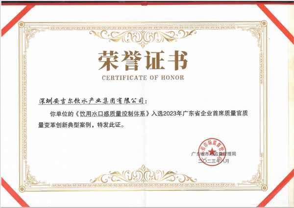 8月29日,广东省企业首席质量官经验交流会暨“质量月”活动启动仪式在广州举办。在本次交流会中,安吉尔集团《饮用水口感质量控制体系》获评企业首席质量官质量变革创新典型案例。