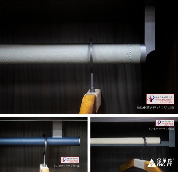 例如金莱雅新款皮革衣杆B68、B122和B128等,在皮革选择与打磨、黏合工艺、花式创新上突破了之前的皮革衣杆技术瓶颈,让以往只有95%的柔韧性和耐用度达到现在100%的效果。