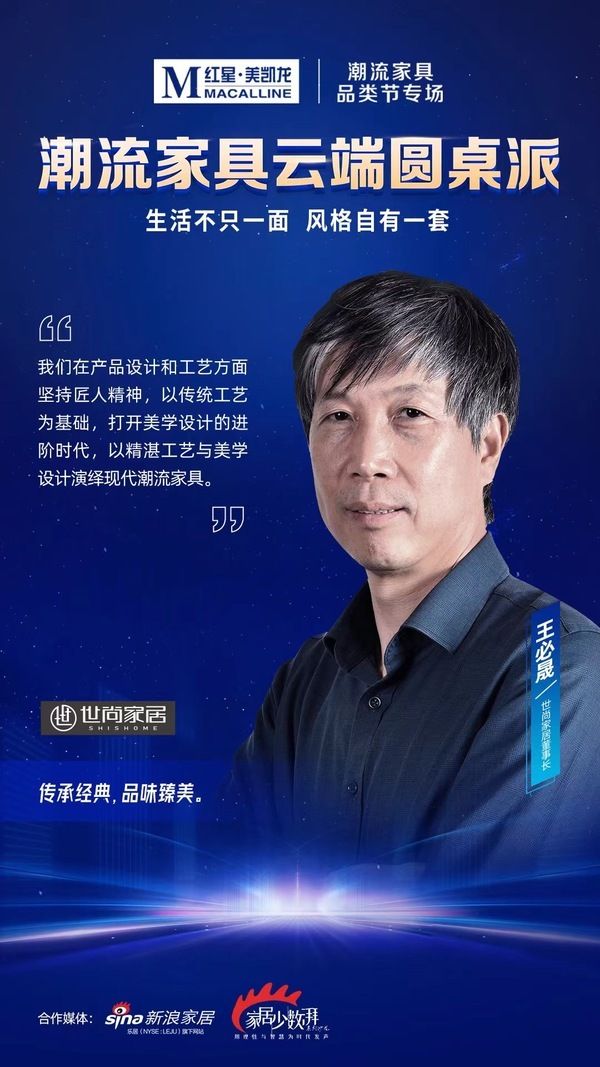 4月28日,由红星美凯龙主办的“潮流家具云端圆桌派”成功举行。活动以“生活不只一面,风格自有一套”作为主题。来自平台、行业头部品牌、权威媒体意见领袖等众多大咖进行深度思维碰撞,探索家具行业新趋势、新潮向。世尚家居董事长王碧晟受邀出席对话论坛,并发表观点。