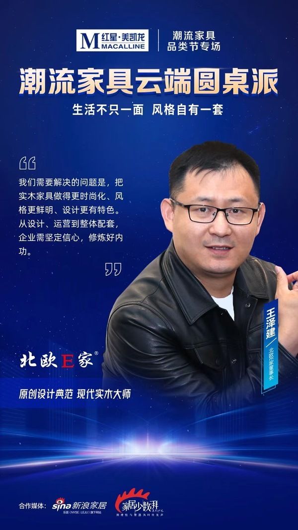4月28日,由红星美凯龙主办的“潮流家具云端圆桌派”成功举行。活动以“生活不只一面,风格自有一套”作为主题。来自平台、行业头部品牌、权威媒体意见领袖等众多大咖进行深度思维碰撞,探索家具行业新趋势、新潮向。北欧E家董事长王泽建受邀出席对话论坛,并发表观点。