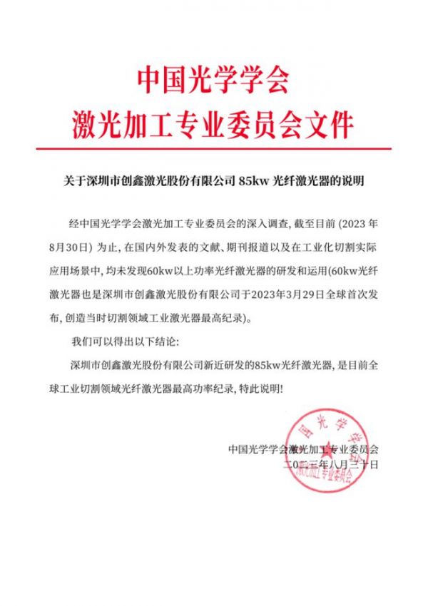 创鑫激光作为中国激光的重要力量,自创始以来一直致力于推动国产超高功率激光事业的发展。从2017年首台万瓦级激光器打破海外垄断,直到目前始终保持全球超高功率工业激光器的最高功率纪录,综合指标领先全球同行,并始终践行“科技普惠大众”的企业发展理念,创鑫激光将从前被欧美国家把持的激光器市场的价格不断降低,此次与奔腾激光联合发布的85kw激光切割机又将更深程度地扭转国内激光市场的局势,让更多中国企业能够花更低的成本、用更好的设备。