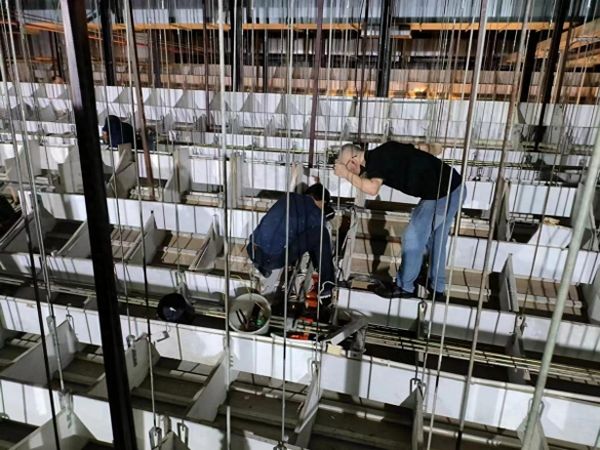 有别于剧场演出所用的灯具与照明方式,在剧场中举办会议论坛需要考虑到灯光对现场交流效果、参会人员舒适性、以及摄像转播的影响华艺工程室内照明项目团队经试验选配定制LED明装射灯相较于剧场原有的传统光源光效更高,绿色低耗有效消除灯光阴影情况,匀称布光整体空间和参会者改造后平均照度达150LX,RA90灯光柔和舒适充分满足论坛交流与摄影、摄像及转播等要求。