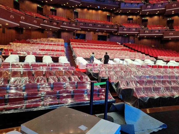 主会场空间开阔,以高功率产品提升空间整体照度四灯一组整齐排布,确保演讲台与会议席布光均匀,实施改造后,剧场观众席照度提升85%。