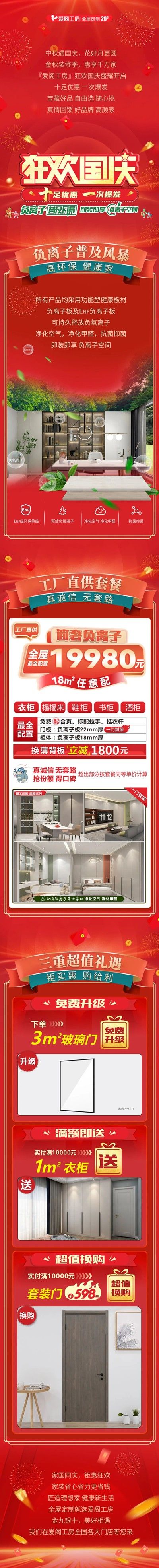 金九银十,恰逢中秋国庆佳节,爱阁工房推出“狂欢国庆”活动,十足优惠 一次爆发!全系产品采用功能型健康板材,负离子板及ENF负离子板,可持久释放负氧离子,净化空气,净化甲醛,抗菌抑菌,即装即享 负离子空间,助力邻居打造品质理想家,开门,就看到了幸福的生活!工厂直供,简奢负离子套餐18m²只要19800元,衣柜、榻榻米、鞋柜、书柜、酒柜全屋任意配,免费配合页、标配拉手、挂衣杆,享最全配置不加价,超出部分按套餐同等单价计算,真诚信 无套路。双节同庆,更有超值好礼等您来!下单即可免费升级玻璃门,实付10000元送1m²衣柜,再加598元送爱阁工房套装门,钜实惠,购给利,先到先得,赶紧到爱阁工房全国各大门店选购吧~