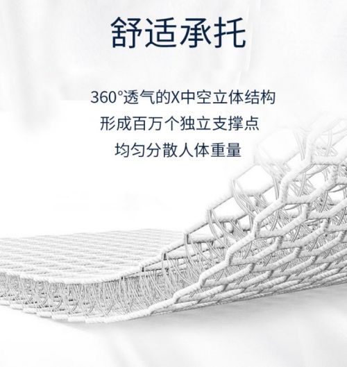 别看3D材料外表软绵绵,它的表面有数以万计的着力点,有利于分散人体的压力,科学承托人体。3D材料的支撑点受到重力时独立运作,不会干扰到整体,有助于保持床垫的平衡和稳定。